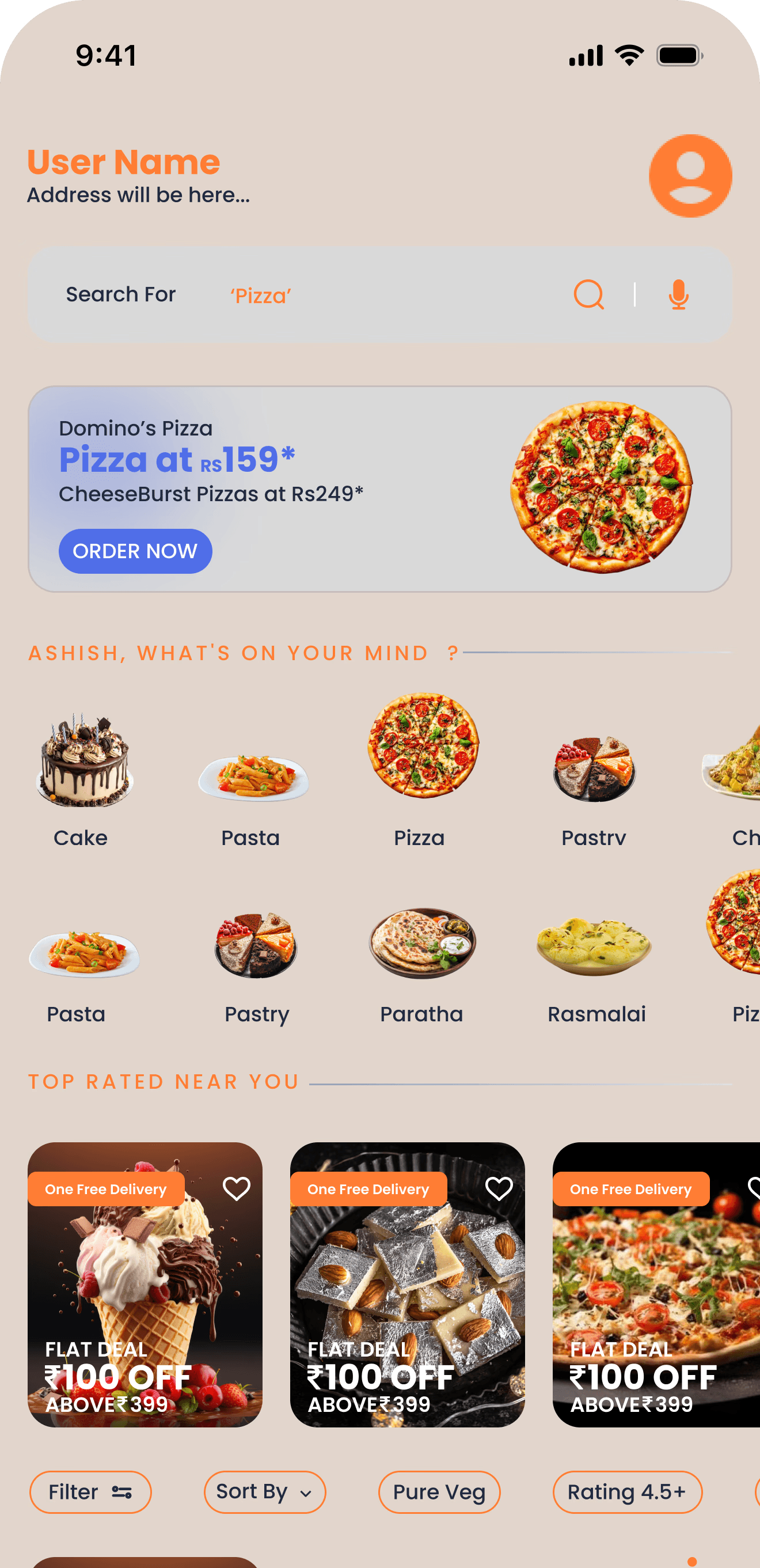 Mobile app for food lovers to browse, order, customize, and track delicious meals from nearby restaurants — all in one smooth and intuitive experience.